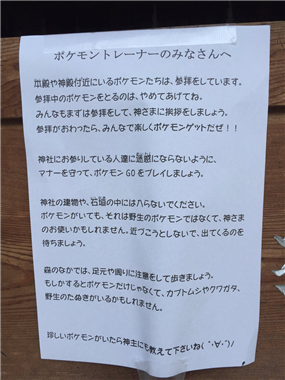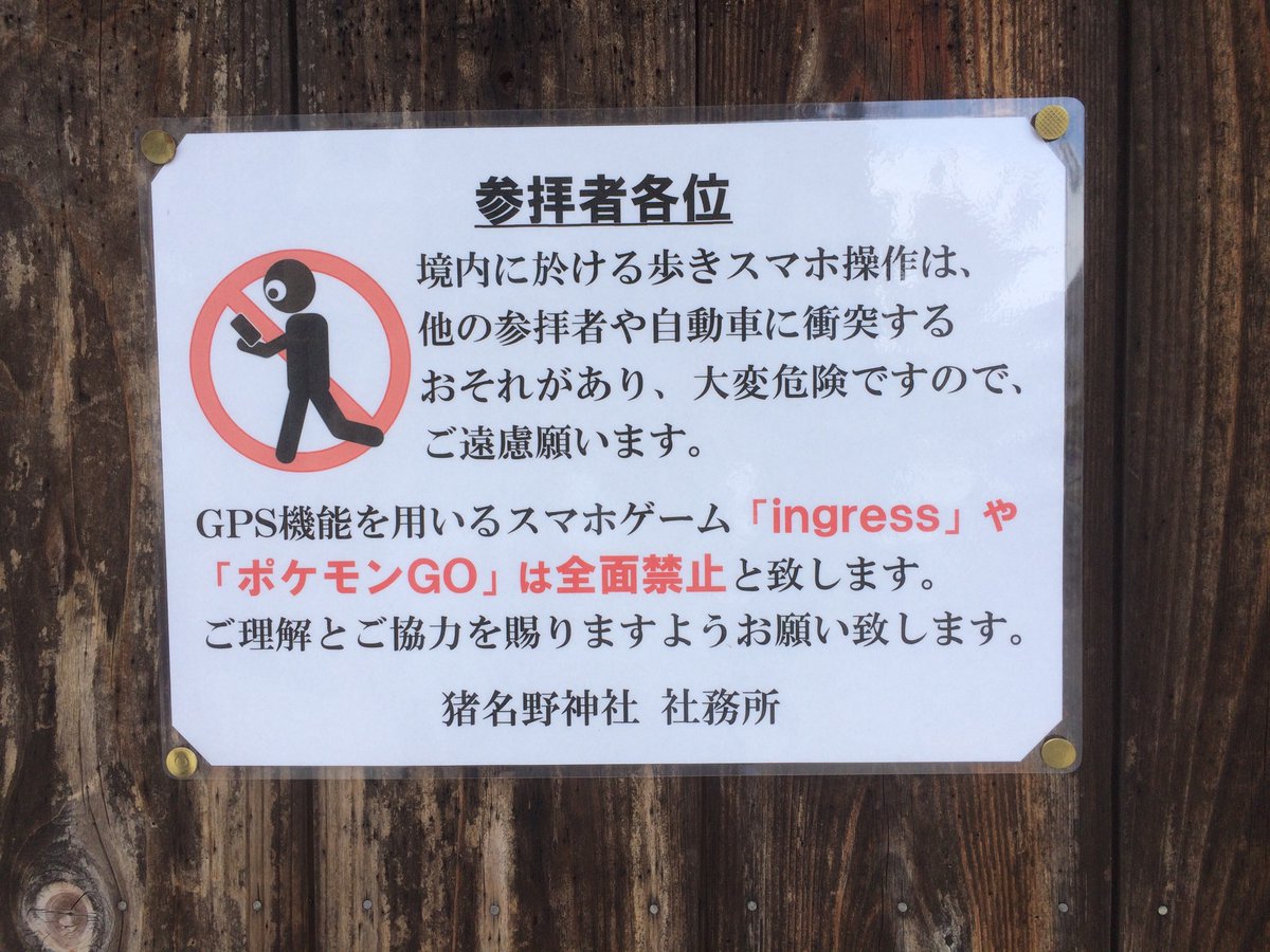 「神社境内地・社有地などでのゲームアプリ「ポケモンGO」「Ingress」の使用は禁止」