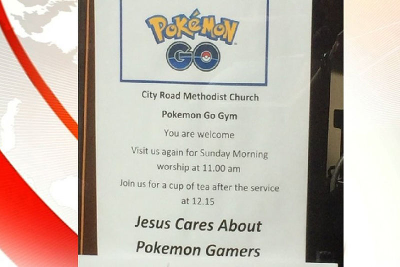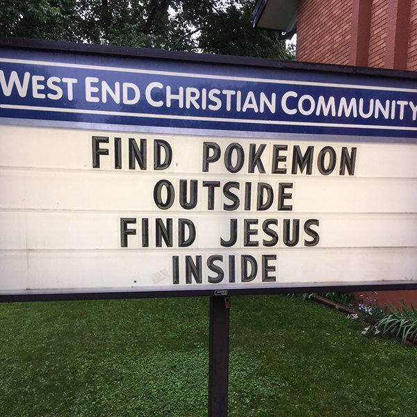 「(教会の)外でポケモンを見つけて、中でイエスを見つけて」