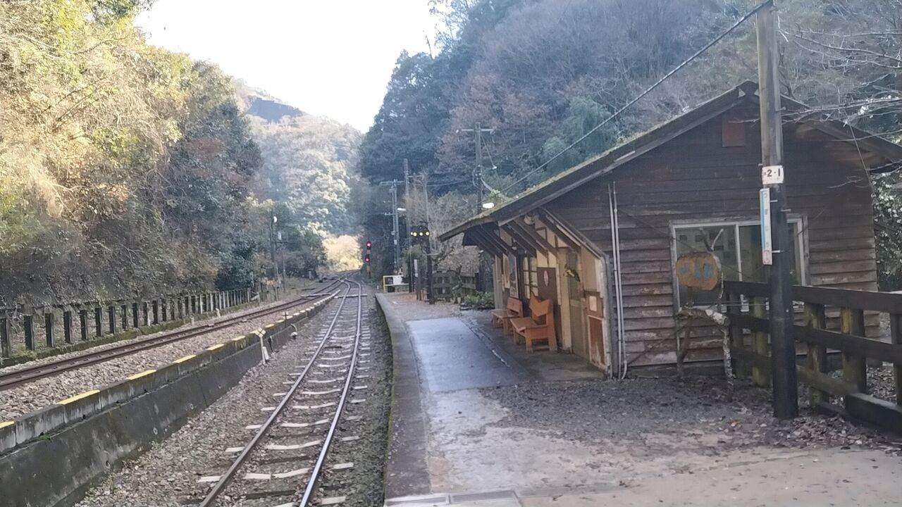 谷底にひっそりと佇む秘境の駅です。