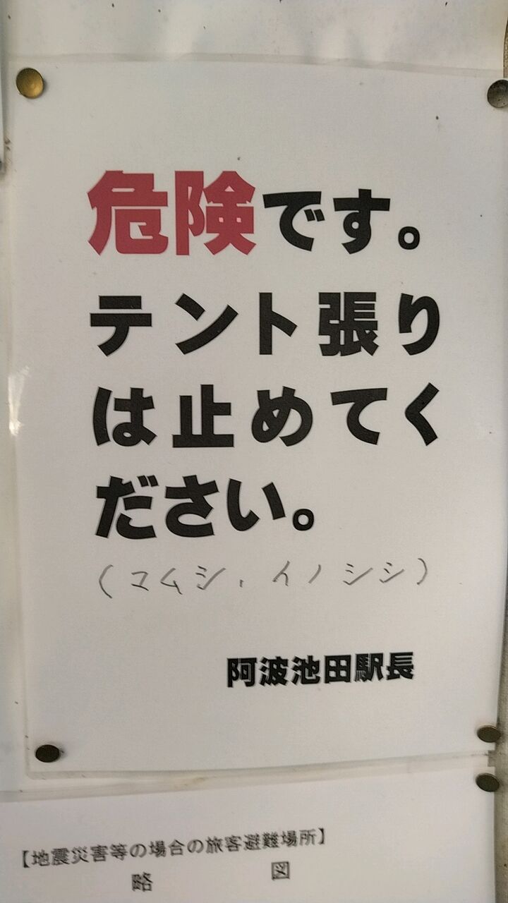 待合室には地震災害への対策が掲示されています。