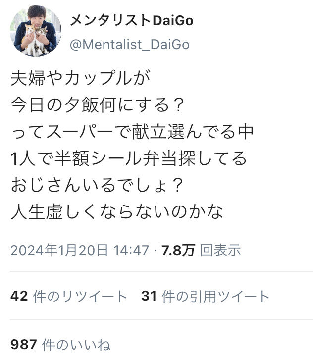 DAIGO「オレ半額大好きっスよ」