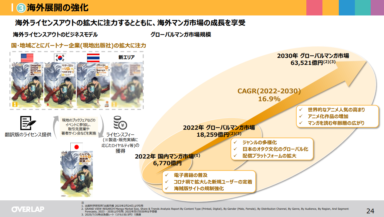 Bさん: その一方で、オーバーラップは編集者の採用や育成に積極的な姿勢を示しており、将来的にはさらなるIP創出が期待できると思います。特に、海外市場への展開も視野に入れているようです。
