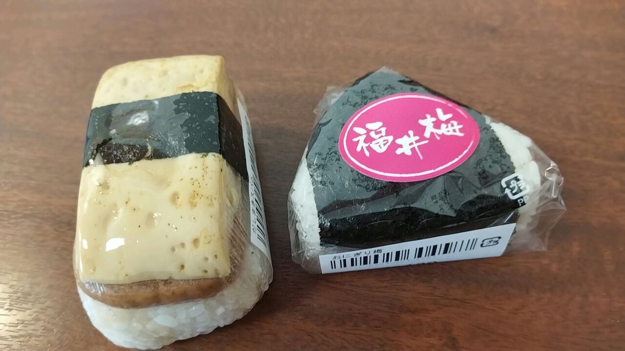 イートインコーナーもあって、福井名物のソースカツ丼もあったんですが、私はさっきホテルで食べたばかりなので、福井梅のおにぎりとスパムおにぎりを選びました。