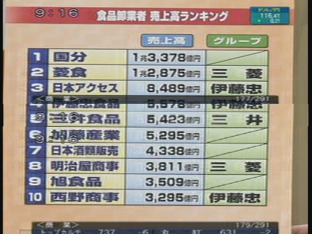・化学・エレクトロニクス事業 8586.05億(7.9%) 合成樹脂、半導体・液晶関連素材などの取扱