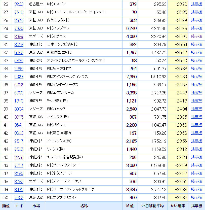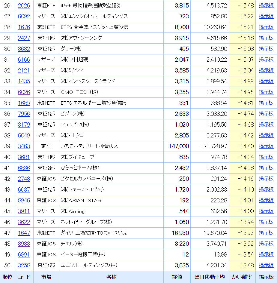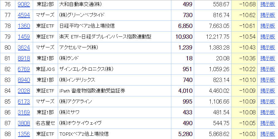 「ココカラファイン」は業績軟調、1Q進捗17.2%。「ブランジスタ」は業績軟調、3Q進捗66.4%。「メディア工房」は下方修正のお知らせ。「ユアテック」は業績軟調、1Q進捗6.8%。「ボルテージ」は下方修正のお知らせ。「アクセルマーク」は下方修正のお知らせ。「シダー」は1Q不安、8/5予定。「SHIFT」は業績軟調、3Q進捗74.0%。「ラウンドワン」は1Q不安、8/8予定。業績が悪いのは売られる。